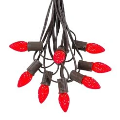 Buy Novelty Lights Vintage Style Assorted Color Ceramic 100 C7 Christmas light sets to illumiate your outdoor garden, patio, deck, roofline, trees, or walkway for Christmas or any special event. Each set includes 125 painted glass C7 Christmas light bulbs and a 100 foot heavy-duty brown wire stringer with 100 sockets that are spaced 12″ apart. With 125 bulbs, these sets include 25 extra bulbs at an excellent value. Novelty Lights multi colored opaque C7 Christmas string light sets have long-lasting 3000 hour bulbs and are on a durable 20 gauge brown wire. All of our C7 light cords use patented Admiral Brand sockets. These durable and heavy duty string lights will provide you with years of easy, maintenance-free use.