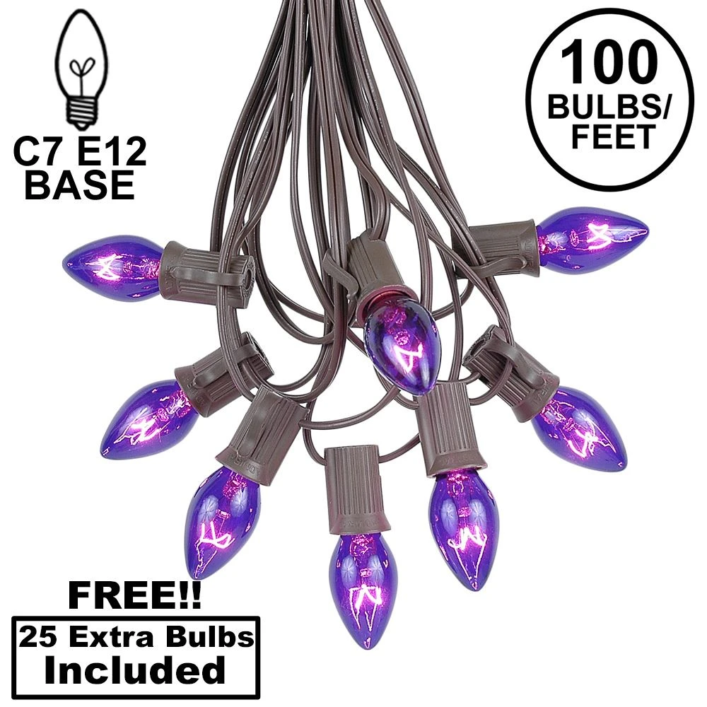 - C7 String Light Set: 125 Purple C7 Traditional Christmas Bulbs & 100 Sockets