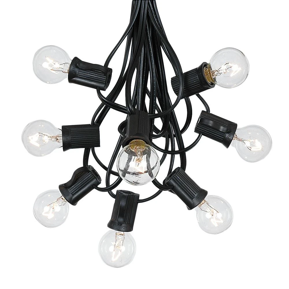 Novelty Lights 100 foot Clear G30 globe string light sets are perfect to illuminate your outdoor garden, patio, deck, yard, or special event space. Each set includes 125 round Clear G30 globe bulbs and a Black 100 foot heavy-duty brown wire stringer with 100 sockets that are spaced 12″ apart. Our Clear G30 globe string light sets have long-lasting 3000 hour bulbs and are on a durable 20 gauge Black wire. All of our G30 light strings use patented Admiral Brand sockets, and come with 25 extra bulbs for life’s little mishaps. These durable and heavy duty light strings will provide you with years of maintenance-free use.