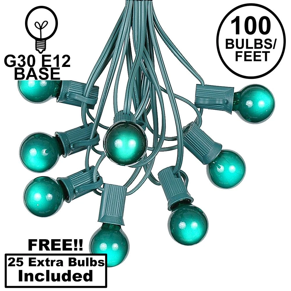 - G30 String Light Set: 125 Green Satin Globe Shaped Bulbs & 100 Sockets