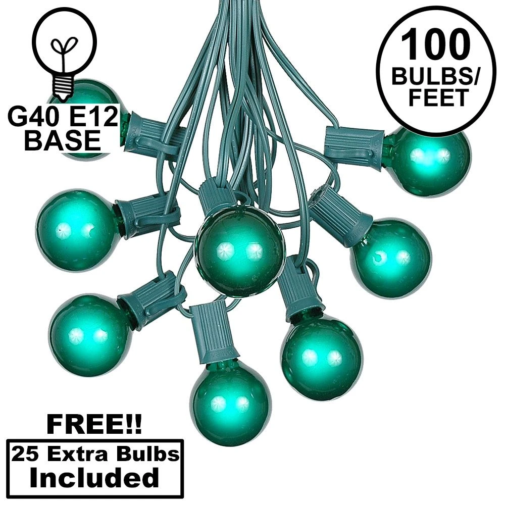 - G40 String Light Set: 125 Green Globe Shaped Bulbs & 100 Sockets
