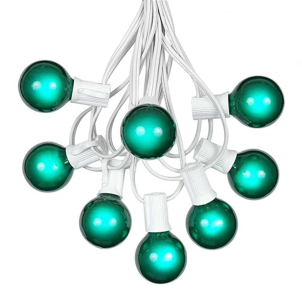 - G40 String Light Set: 125 Green Satin Globe Shaped Bulbs & 100 Sockets