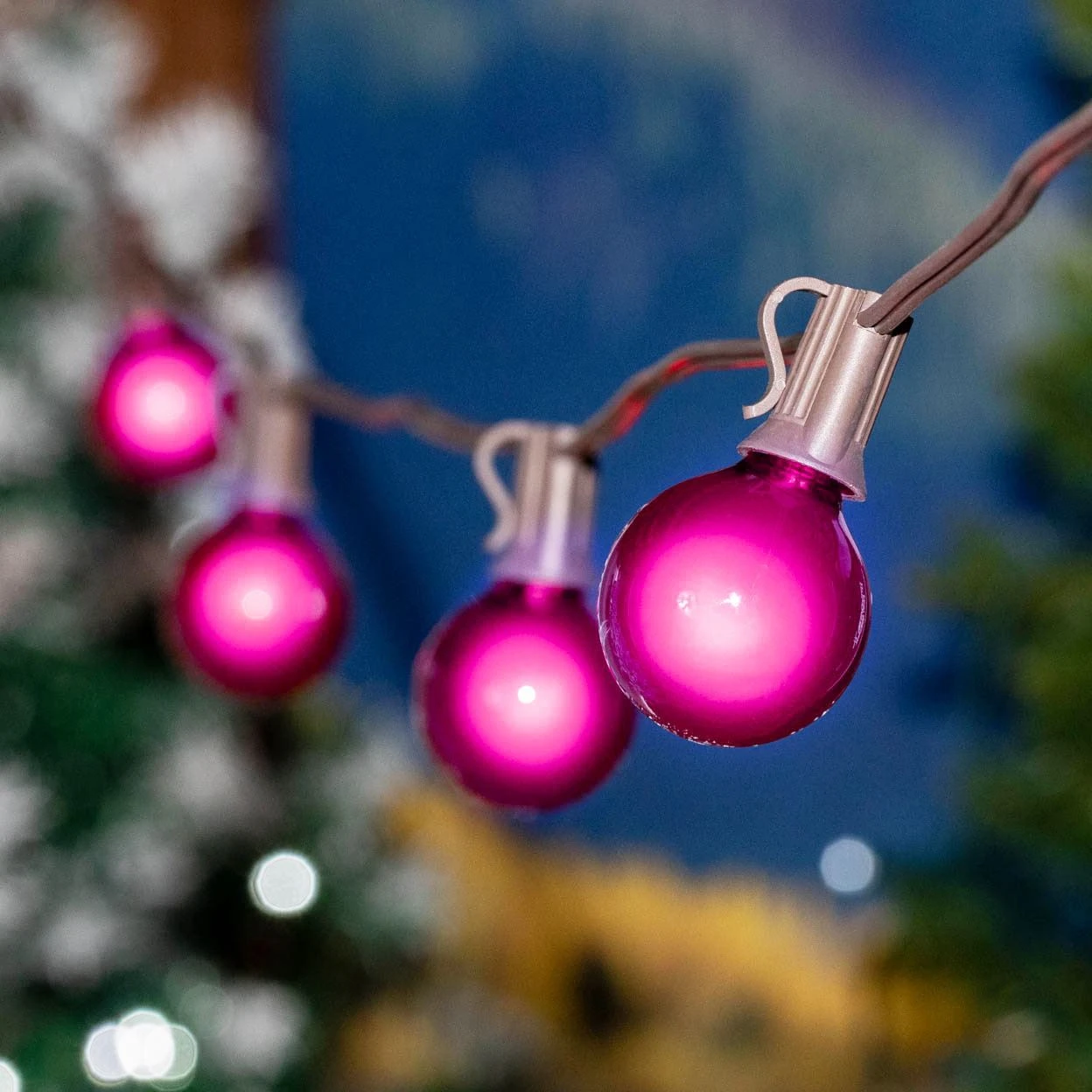 Novelty Lights 100 foot Pink Satin G40 globe string light sets are perfect to illuminate your outdoor garden, patio, deck, yard, or special event space. Each set includes 125 round Pink Satin G40 globe bulbs and a Brown 100 foot heavy-duty wire stringer with 100 sockets that are spaced 12″ apart. Our Pink Satin G40 globe string light sets have long lasting 3000 hour bulbs and are on a durable 20 gauge Brown wire. All of our G40 light strings use patented Admiral Brand sockets, and come with 25 extra bulbs for life’s little mishaps. These durable and heavy duty light strings will provide you with years of maintenance-free use.