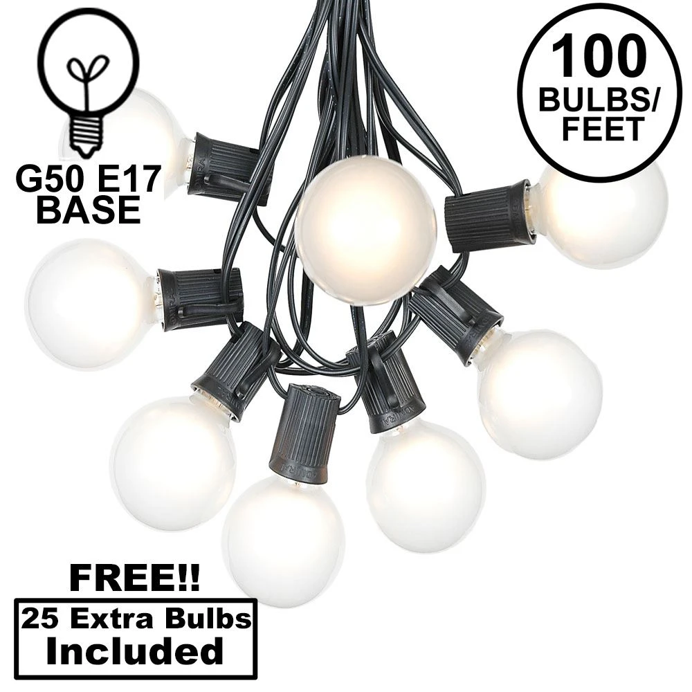- G50 Frosted White Globe Shaped Bulbs with 100 Socket String Light Set