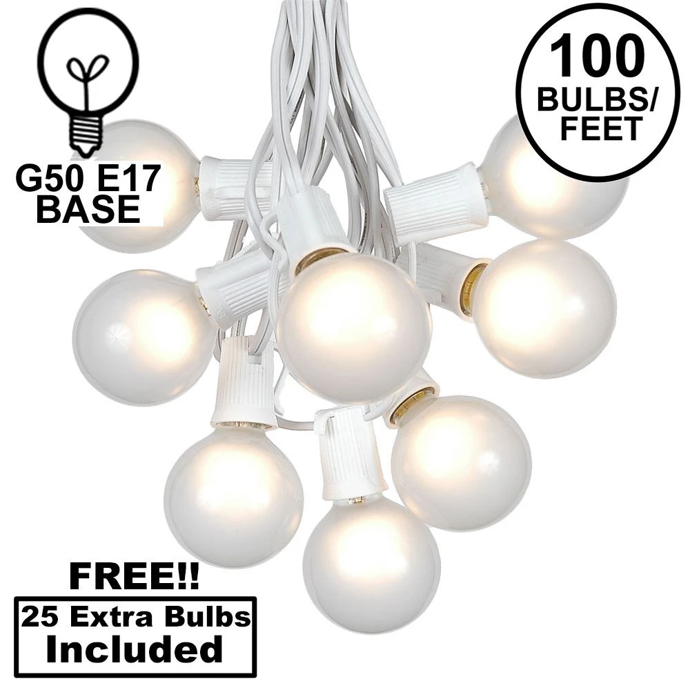 - G50 Frosted White Globe Shaped Bulbs with 100 Socket String Light Set