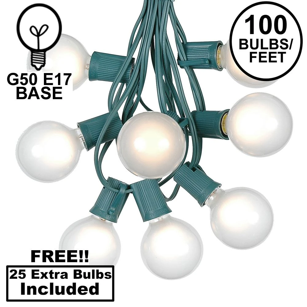 - G50 Frosted White Globe Shaped Bulbs with 100 Socket String Light Set