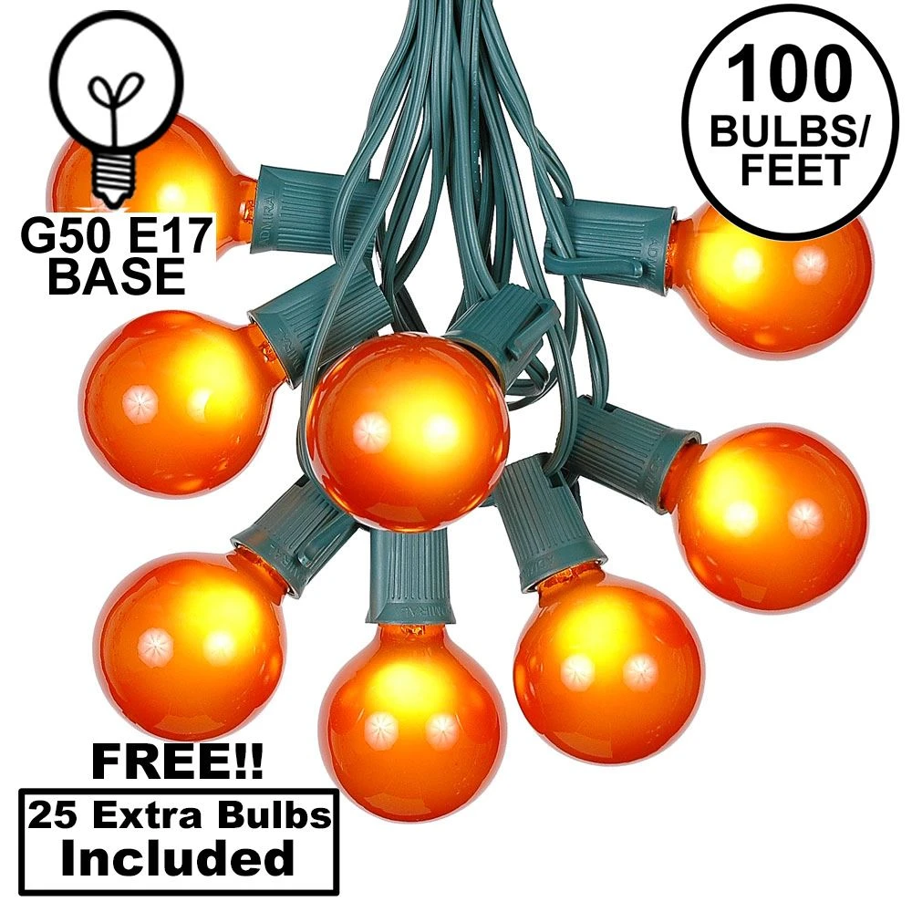 - G50 Orange Globe Shaped Bulbs with 100 Socket String Light Set