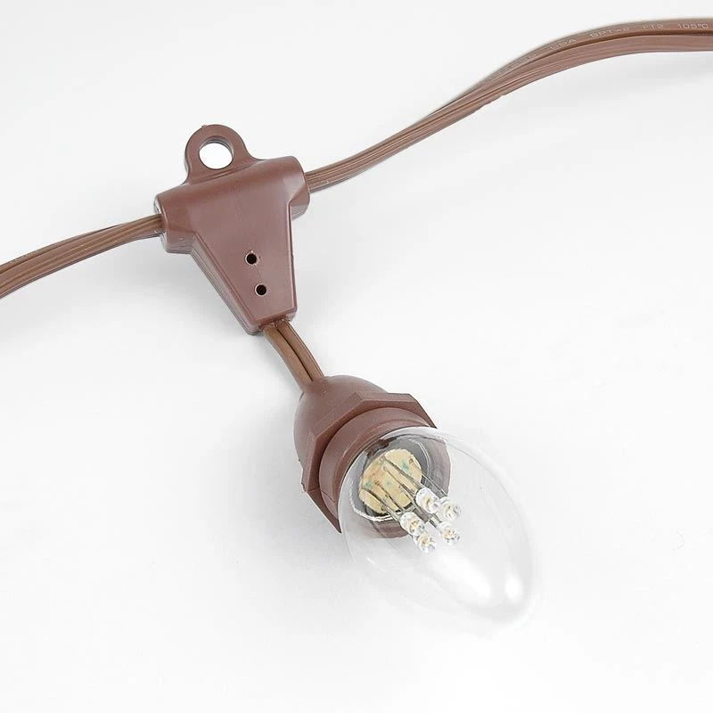 These heavy duty and commercial light sets have 80 intermediate (e17) base suspended sockets spaced 15″ apart on brown 16 gauge Spt-2 wire. These intermediate base outdoor light strings are very versatile making them perfect for permanent outdoor lighting applications. Each suspended string comes ready to plug in and have no end-to-end plugs. This product is perfect for our intermediate base S11 bulbs, our G50 incandescent or G50 LED bulbs, and our 7 or 10 watt C9 incandescent bulbs.