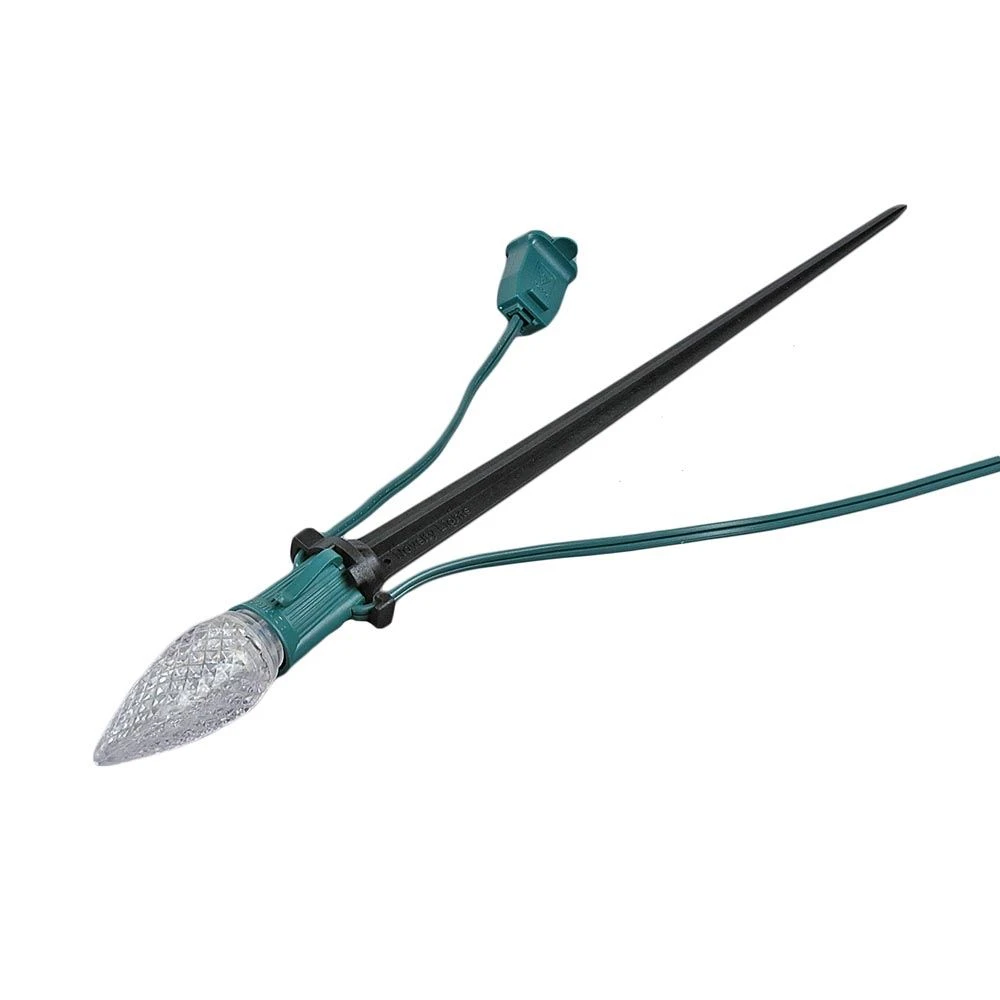 Universal Light Stakes are perfect for lining driveways, yards, and walkways with C9 or C7 lamps. After you have decorated your gutters and roof lines, try lining the driveway or walkways with our universal light stakes. Simply hammer the 12″ black universal light stake into the ground, place the C9 or C7 socket on top of the stake, and attach the wire to the 2 notches on each side of the stake. Each lamp will point skyward after completely installed. Using stakes will keep wires off the ground and the lamps upright. Please call if you have any questions about any of our mounting stakes.