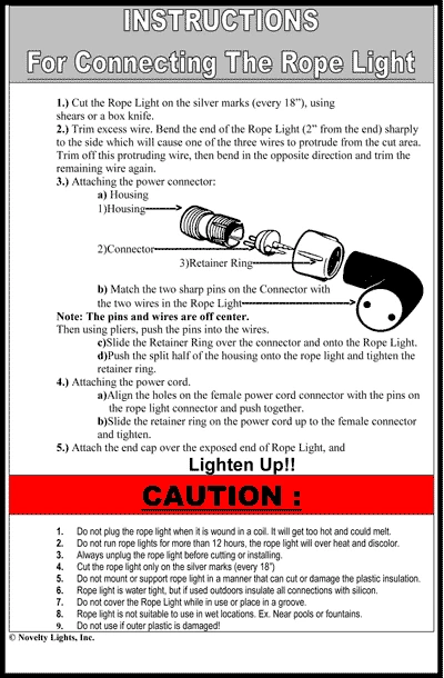 Applications: Cove Lighting, Building Outlines, Decks/Patios, Awnings, Window Outlines, Shelves/Bookcases, Under-Cabinet Lighting, Christmas Displays, Light Sculptures, and Home Theater Design