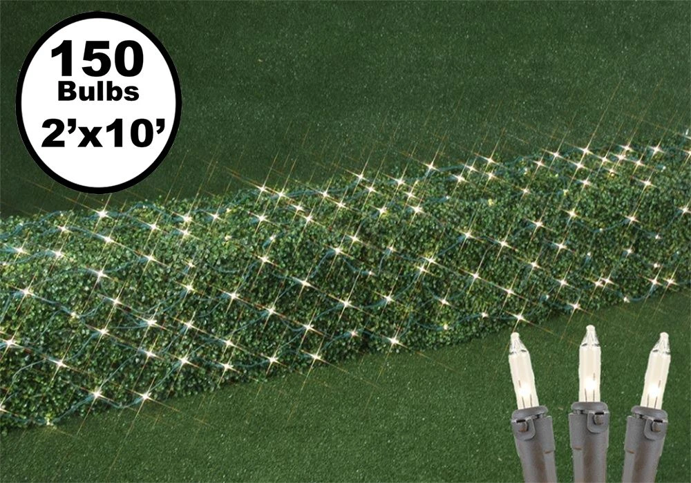 Our 2′ x 10′ Incandescent Clear Net Lights on Brown wire are perfect for decorating hedges and shrubs and wrapping trees. These Brown wire net lights are constructed using 150 mini lights to make our net lights brighter than regular net lights — and If one light burns out the rest will stay lit. Choose net lights for quick installation and connect up to 3 net lights together for larger surfaces. Each net light purchase includes 3 replacement bulbs.