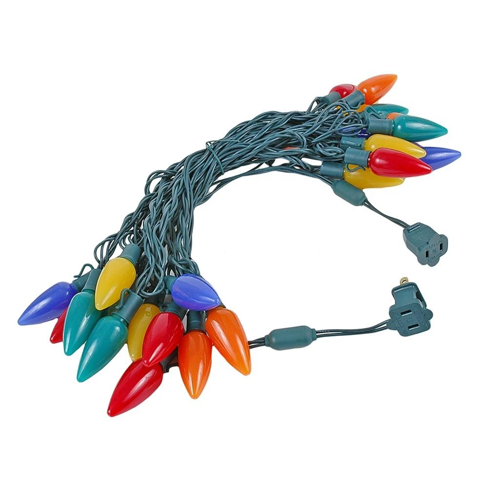 25 Lamp C9 Ceramic Multi Colored LED String Lights Sets on Green Wire