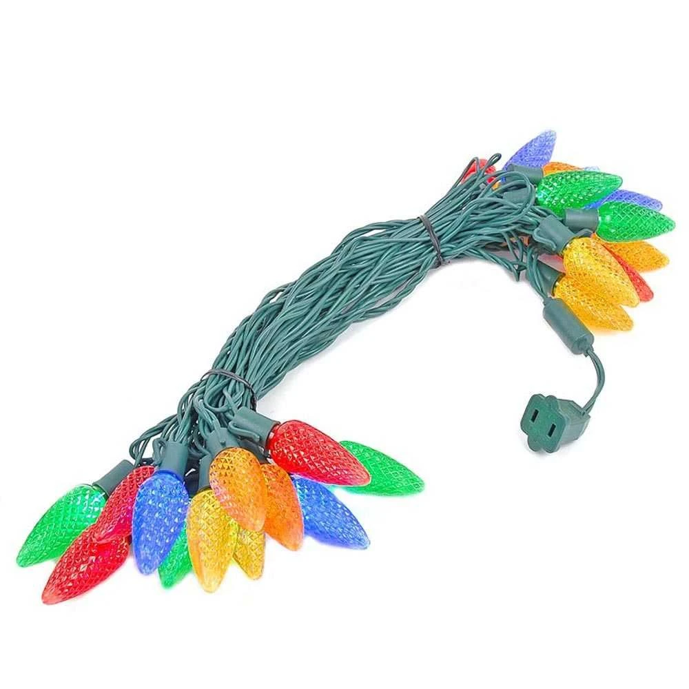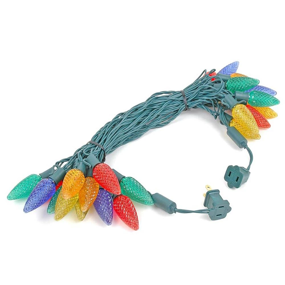 25 Lamp C9 Multi Colored LED String Lights Sets on Green Wire