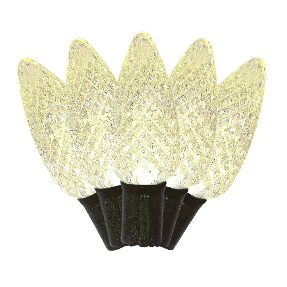 Our ready-to-hang warm white C9 LED light sets are sure to be a hit this season. These pre-lamped strings feature extra long bulb spacing and commercial grade, non-removable LED C9 bulbs. Because each set is 25′ long with 12″ between lamps they are perfect way to decorate larger trees and rooflines, connecting multiple strings end-to-end. These sets use one-piece non-removable bulbs, therefore failures due to broken, damaged, removed, or burnt-out bulbs, are eliminated. Our brilliant C9 LED Christmas string lights have high quality, built-in, full wave rectifiers, making them extremely bright without any flicker. Connect up to 43 strings end-to-end. UL Listed for indoor and outdoor use and Energy Star qualified.