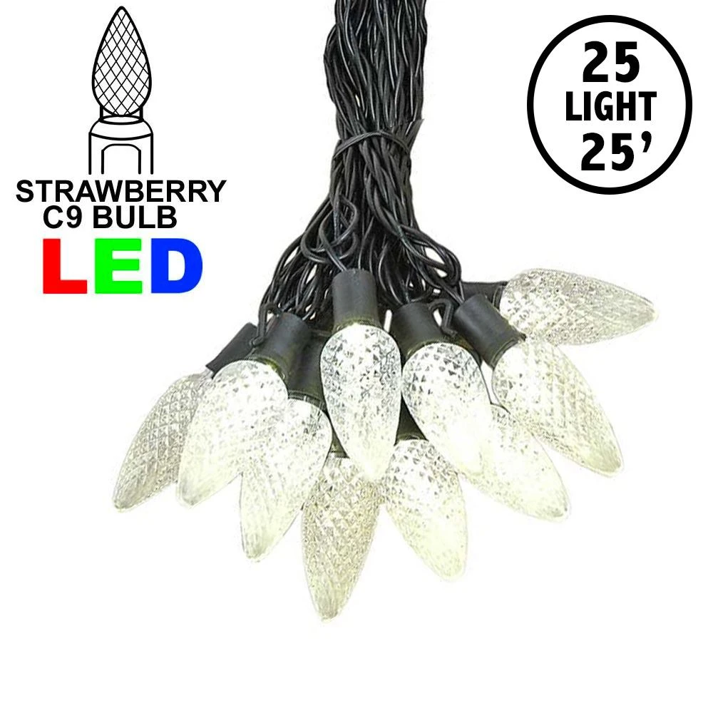 25 Lamp C9 Warm White LED String Lights Sets on Black Wire