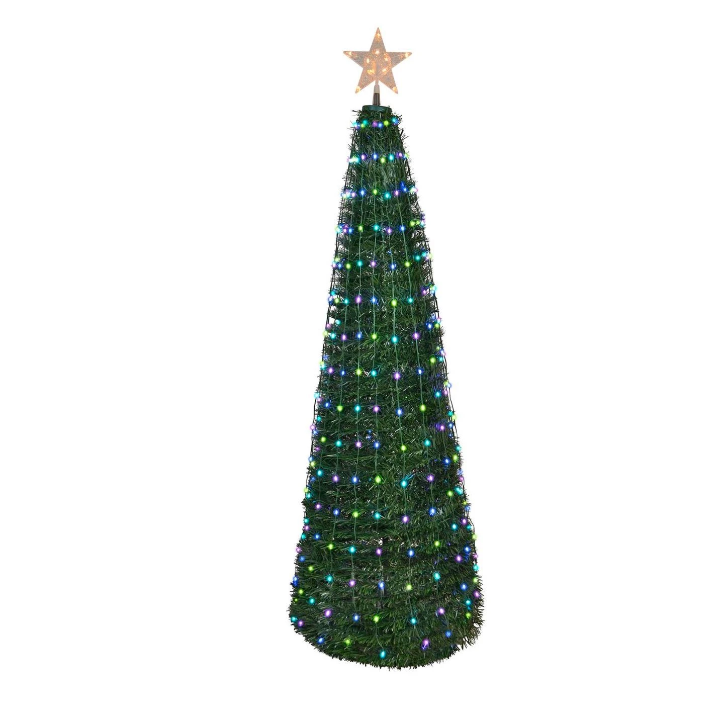 Our 4′ RGB Color Changing Dancing Christmas tree will add a magical vibe to your outdoor or indoor Christmas displays. This artificial POP-UP Christmas tree is pre-lit with 186 Color-Changing Big Seed Micro LED Ribbon lights with a LED Star topper.