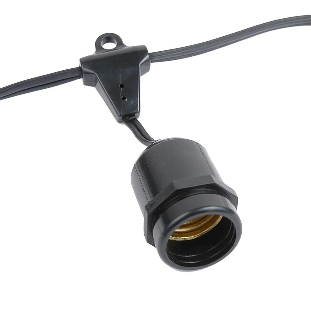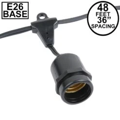 Our heavy duty suspended medium base light stringers create a perfect environment for any outdoor area that needs illumination. These durable and commercial light sets have 15 medium base sockets spaced 36″ apart on Black 16 gauge SPT-2 wire. Each string comes ready to plug in and have end-to-end plugs. This product is perfect for our 11 watt incandescent or 1 watt LED S14 bulbs.