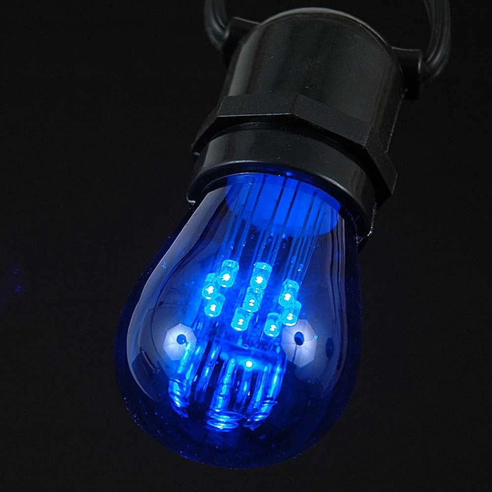 Complement your outdoor living space with our Blue LED S14 glass bulbs. Perfect for replacing old inefficient 11 watt incandescent medium base bulbs at your bar, restaurant, beer garden, or outdoor patio living area. Our Blue (e26)base LED S14 glass bulbs have 9 LED diodes, only use .80 watts per bulb and have a 40,000 hour bulb life making these perfect for permanent applications. Our S14 LED bulbs are glass, therefore, they will not fade or discolor like other plastic LED S14 replacement bulbs. Our Blue LED S14 bulbs will pay for themselves with the money you save on your electric bill! Great for indoor and outdoor use, pair with our Heavy Duty (e26)base Light Strings.