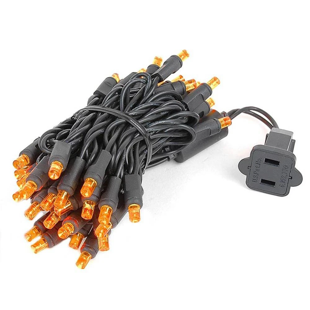 Our super bright black wire 50 light Amber Wide Angle Mini Lights have 50 commercial grade LED’s on 2.5″ centers making each string 11′ long. Because these strings have non removable LED’s this eliminate failures from loose, broken or removed bulbs making these commercial grade LED Christmas lights very durable, long lasting and extremely energy efficient. Each string also is full wave rectified which eliminates any flickering while making these amber LED Christmas lights brighter than ordinary LED mini Lights. Each LED uses a patented concave design making these LED viewable from all angles. Energy Star qualified and UL Listed for indoor and outdoor use. Connect up to 43 strings end-to-end.
