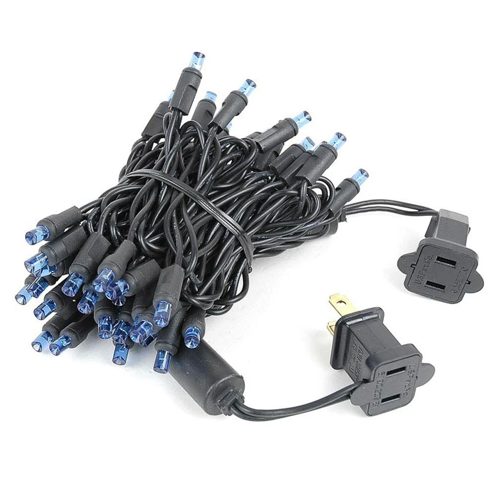 Our super bright black wire 50 light Blue Wide Angle Mini Lights have 50 commercial grade LED’s on 2.5″ centers making each string 11′ long. Because these strings have non removable LED’s this eliminate failures from loose, broken or removed bulbs making these commercial grade LED Christmas lights very durable, long lasting and extremely energy efficient. Each string also is full wave rectified which eliminates any flickering while making these blue LED Christmas lights brighter than ordinary LED mini Lights. Each LED uses a patented concave design making these LED viewable from all angles. . Energy Star qualified and UL Listed for indoor and outdoor use. Connect up to 43 strings end-to-end.