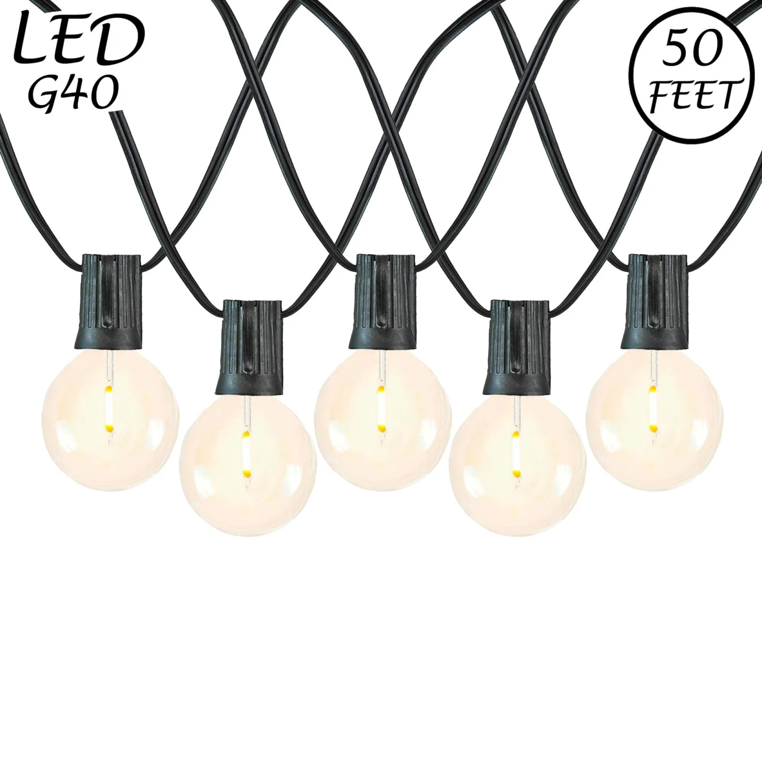 - G40 String Light Set: 50 LED Warm White Globe Shaped Bulbs & 50 Sockets