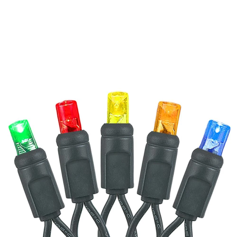 Our super bright 50 light Multi Wide Angle Mini Lights on Black Wire have 50 commercial grade LED’s on 2.5″ centers making each string 11′ long. Because these strings have non removable LED’s this eliminate failures from loose, broken or removed bulbs making these commercial grade LED Christmas lights very durable, long lasting and extremely energy efficient. Each black string also is full wave rectified which eliminates any flickering while making these LED Christmas lights brighter than ordinary LED mini Lights. Each LED uses a patented concave design making these LED viewable from all angles. . Energy Star qualified and UL Listed for indoor and outdoor use. Connect up to 43 strings end-to-end.