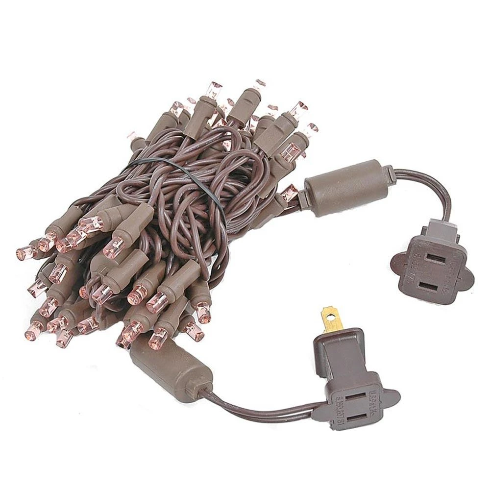 50 Pink Wide Angle LED Mini Light on Brown Wire
