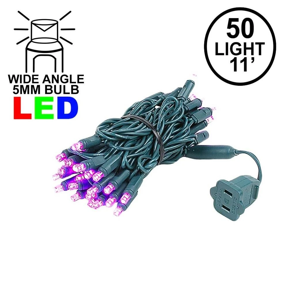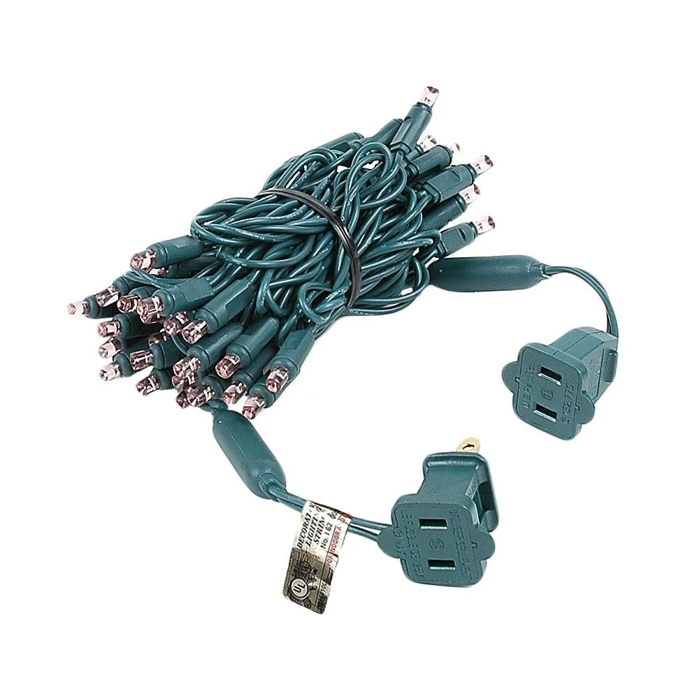 Our super bright 50 light Pink Wide Angle Mini Lights on green wire have 50 commercial grade LED’s on 2.5″ centers making each string 11′ long. Because these strings have non removable LED’s this eliminate failures from loose, broken or removed bulbs making these commercial grade LED Christmas lights very durable long lasting and extremely energy efficient. Each string also is full wave rectified which eliminates any flickering while making these LED Christmas lights brighter than ordinary LED mini Lights. Each LED uses a patented concave design making these LED viewable from all angles. . Energy Star qualified and UL Listed for indoor and outdoor use. Connect up to 43 strings end-to-end.