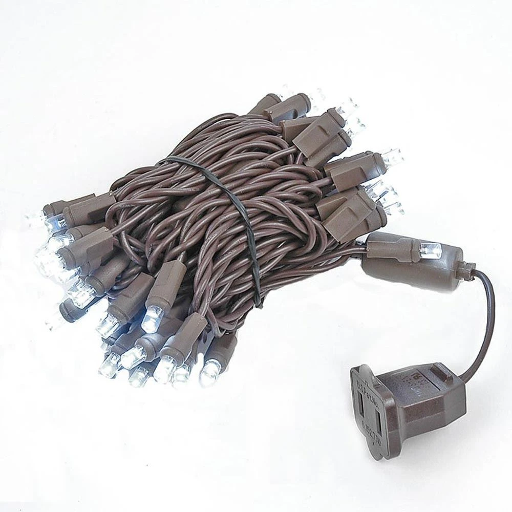 50 Pure White Wide Angle LED Mini Lights on Brown Wire