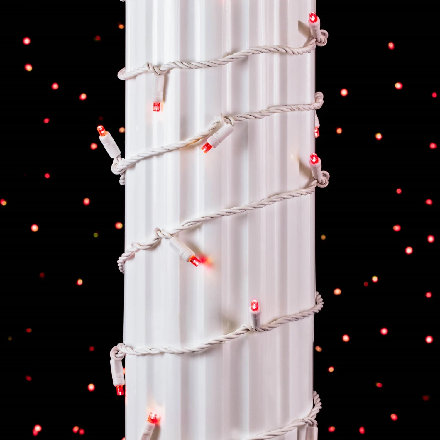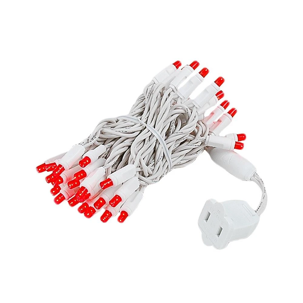 Our super bright white wire 50 light Red Wide Angle Mini Lights have 50 commercial grade LED’s on 2.5″ centers making each string 11′ long. Because these strings have non removable LED’s this eliminate failures from loose, broken or removed bulbs making these commercial grade LED Christmas lights very durable long lasting and extremely energy efficient. Each string also is full wave rectified which eliminates any flickering while making these red LED Christmas lights brighter than ordinary LED mini Lights. Each LED uses a patented concave design making these LED viewable from all angles. . Energy Star qualified and UL Listed for indoor and outdoor use. Connect up to 43 strings end-to-end.