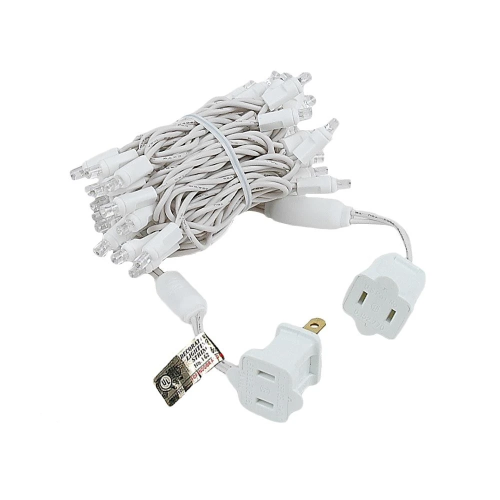 50 Warm White Wide Angle LED Mini Light on White Wire