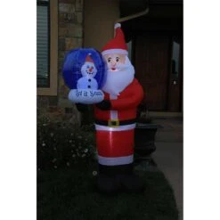 Our 7.5-foot inflatable Santa with snow globe inflatable boasts two awesome displays in one. You start with a giant Santa Clause that is illuminated by LED lights then add in the colorful snow globe and you have yourself a very Merry Christmas. The display is constructed with high-grade weather resistant polyester helping Santa weather any storm. This inflatable display is weighted at the bottom and includes base-stakes and a tethering package, so it always stays upright. In this display, Santa is holding another mini display of a magical snow globe encasing another inflatable snow man. The magic globe is sparkling with blue swirling LED lights that highlight the miniature snow man inside. This inflatable scene is guaranteed to brighten up your holiday display.