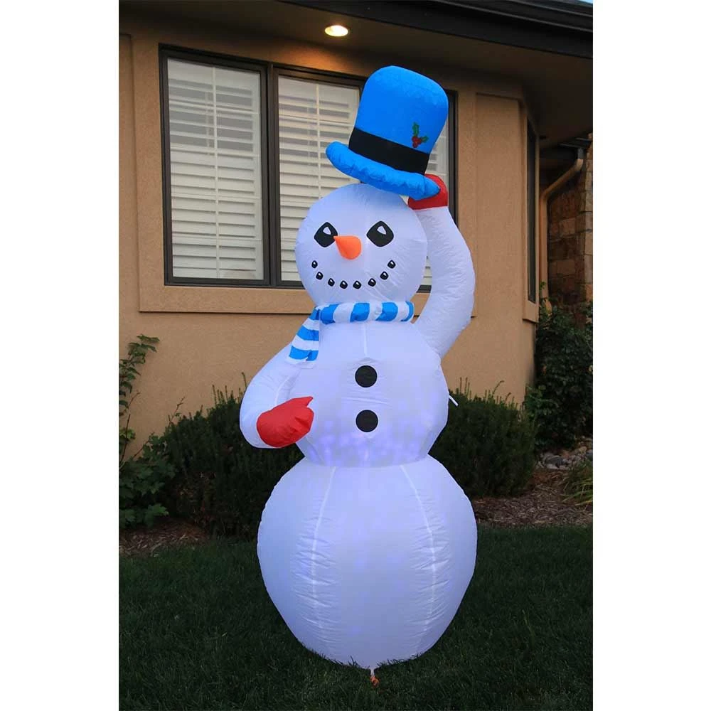 Our seven-foot giant snowman is a sure way to bring attention and cheer to your holiday display this year. Made using high-grade weather resistant polyester material to handle any type of weather. The included bottom-weight and a tethering package make set-up a breeze. This display will be the easiest and one of the most fun displays you put up this year. Be amazed as the long-lasting LED swirling lights illuminate the inflatable snowman. This Snowman, with his waving scarf and tipping hat, will look great next to other inflatables or complement your existing lighting décor.