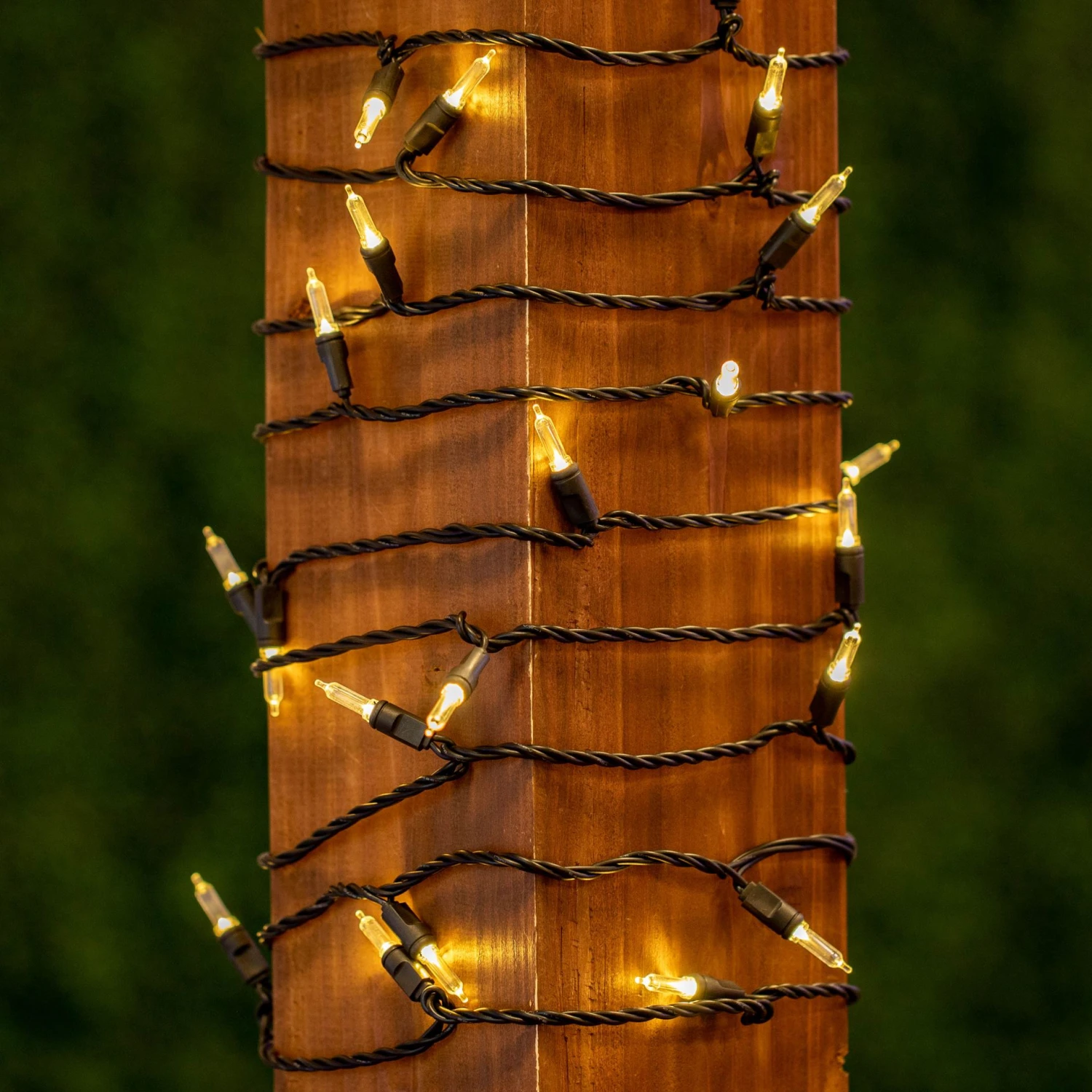 70 Light Traditional LED Christmas Mini Lights Warm White on Brown Wire