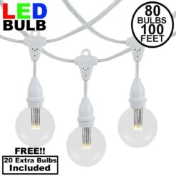 - Set Includes 80 G50 LED Warm White 1 Watt Bulbs – 20 Extra Bulbs Included