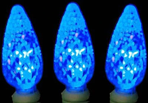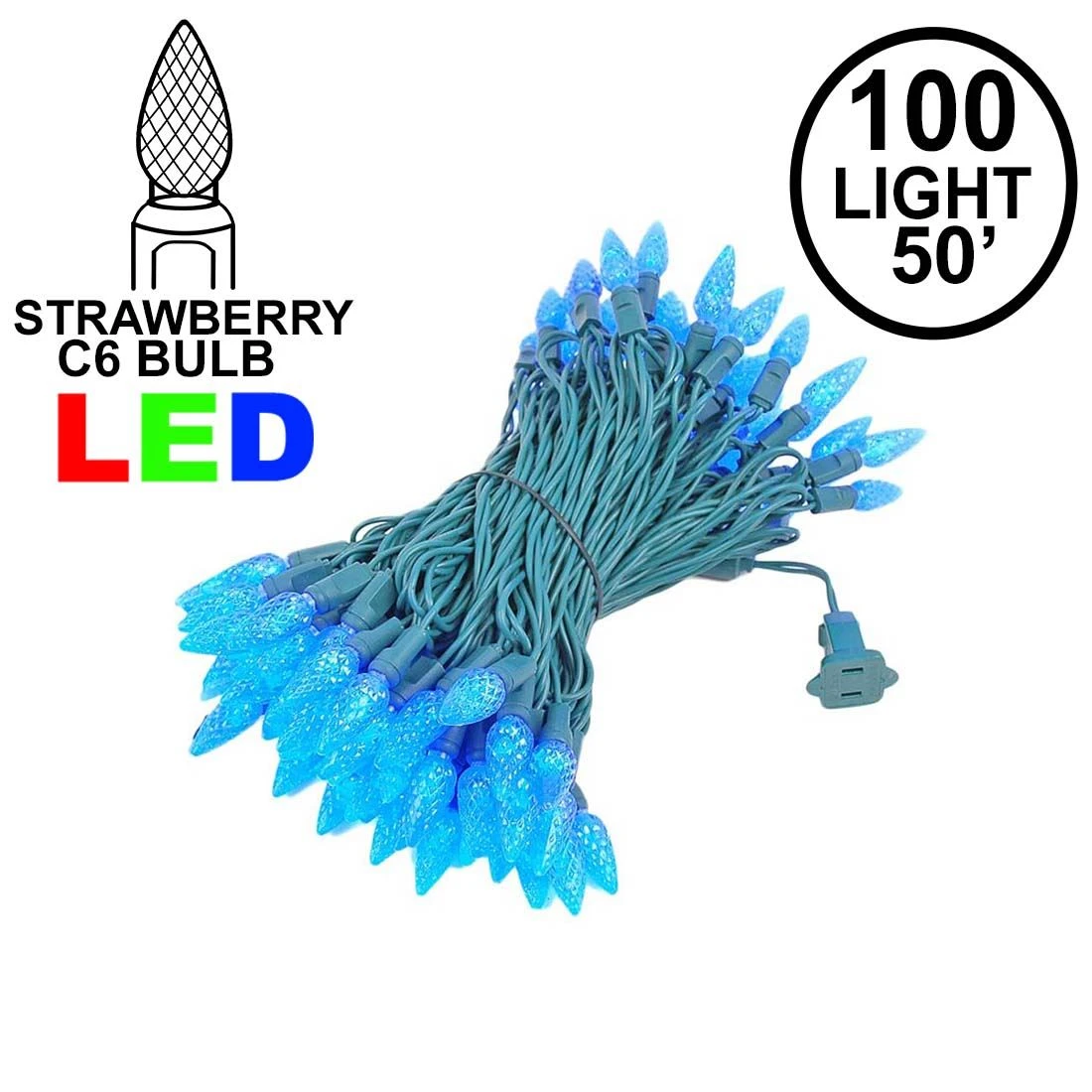 Our 100 light Commercial Grade Blue C6 LED Strawberry Lights are sure to brighten up any holiday display or special event. These high quality LED Christmas light sets are built using nonremovable high quality super bright LED’s that will last several years. Because these sets use one-piece non-removable bulbs, failures due to broken, damaged, removed, or burnt-out bulbs, are eliminated. These Blue LED mini light strings have 100 LED’s spaced every 6″ making them 50′ long. Our C6 LED mini Christmas lights have high quality, built-in, full wave rectifiers, making them extremely bright without any flicker. Connect up to 43 strings end-to-end. UL Listed for indoor and outdoor use and Energy Star qualified.