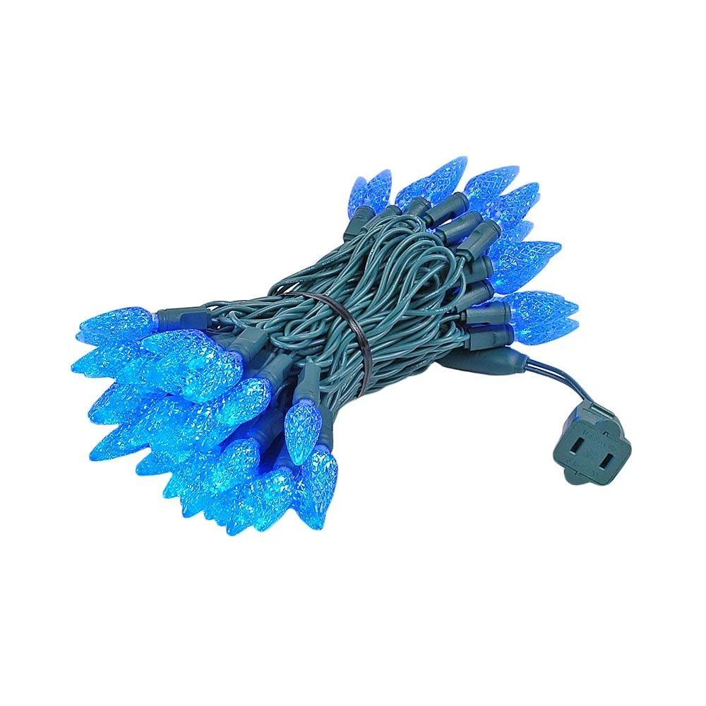 Our 70 light Commercial Grade Blue C6 LED Strawberry Lights are sure to brighten up any holiday display or special event. These high quality LED Christmas light sets are built using nonremovable high quality super bright LED’s that will last several years. Because these sets use one-piece non-removable bulbs, failures due to broken, damaged, removed, or burnt-out bulbs, are eliminated. These Blue LED mini light strings have 70 LED’s spaced every 4″ making them 24′ long. Our C6 LED mini Christmas lights have high quality, built-in, full wave rectifiers, making them extremely bright without any flicker. Connect up to 43 strings end-to-end. UL Listed for indoor and outdoor use and Energy Star qualified.