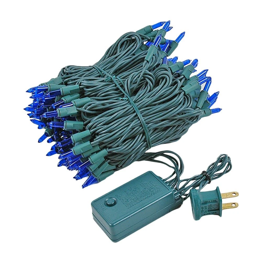 140 light blue chasing set with 4″ spacing 46.5′ long with 16 function controller. Create dazzling and animated christmas light displays using our blue chasing /fading multi function light set. This set uses our premium grade mini light bulb with a 3000 hour bulb life, if one bulb burns out the rest will stay lit. Tested by Novelty Lights to assure the highest quality. UL listed for indoor and outdoor uses.
