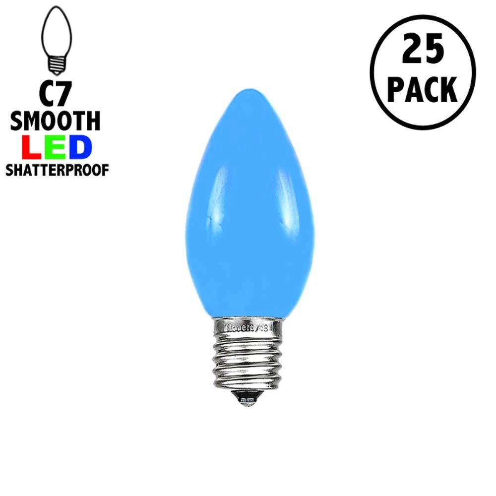 25 Pack of Blue Ceramic C7 LED Plastic Bulbs