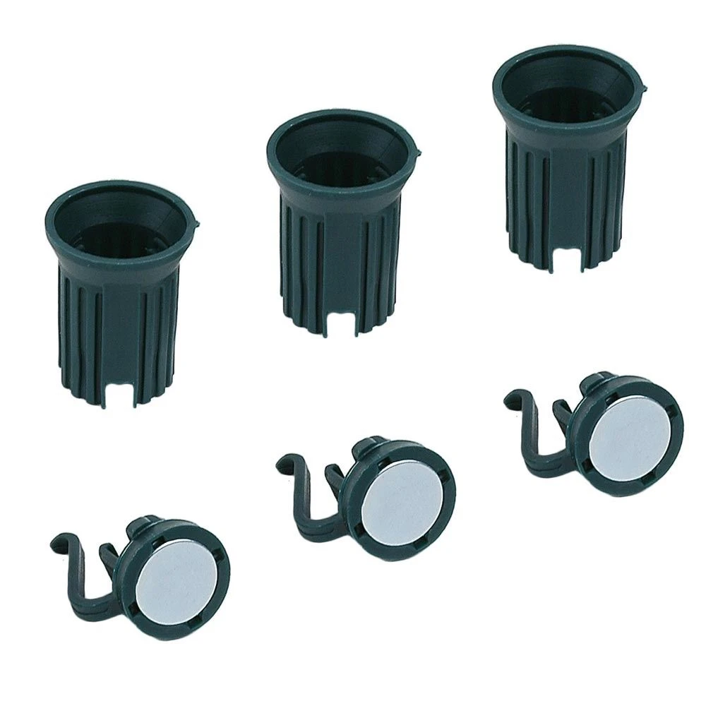 C7 250′ Spool Magnetic string on 12″ Spacing used for homes, office buildings, barns, and restaurants. These magnetic sockets will adhere to any ferrous metals(Iron and Steel) making for quick installations since there in no need for christmas light clips. Perfect for rooflines, building flashing, and gutters. No need for screws, glues, clips just adhere the magnetic C7 socket to you metall surface saving time and labor cost. We use Neodymium grade magnets which are the strongest magnets available. Each magnet is is plated with nickel protective coating which prevent rust. Use this 250-foot, green wire stringer for C7 incandescent, C7 retrofit LED, G30, G40 globe-shaped bulbs. Safe for indoor and outdoor use.