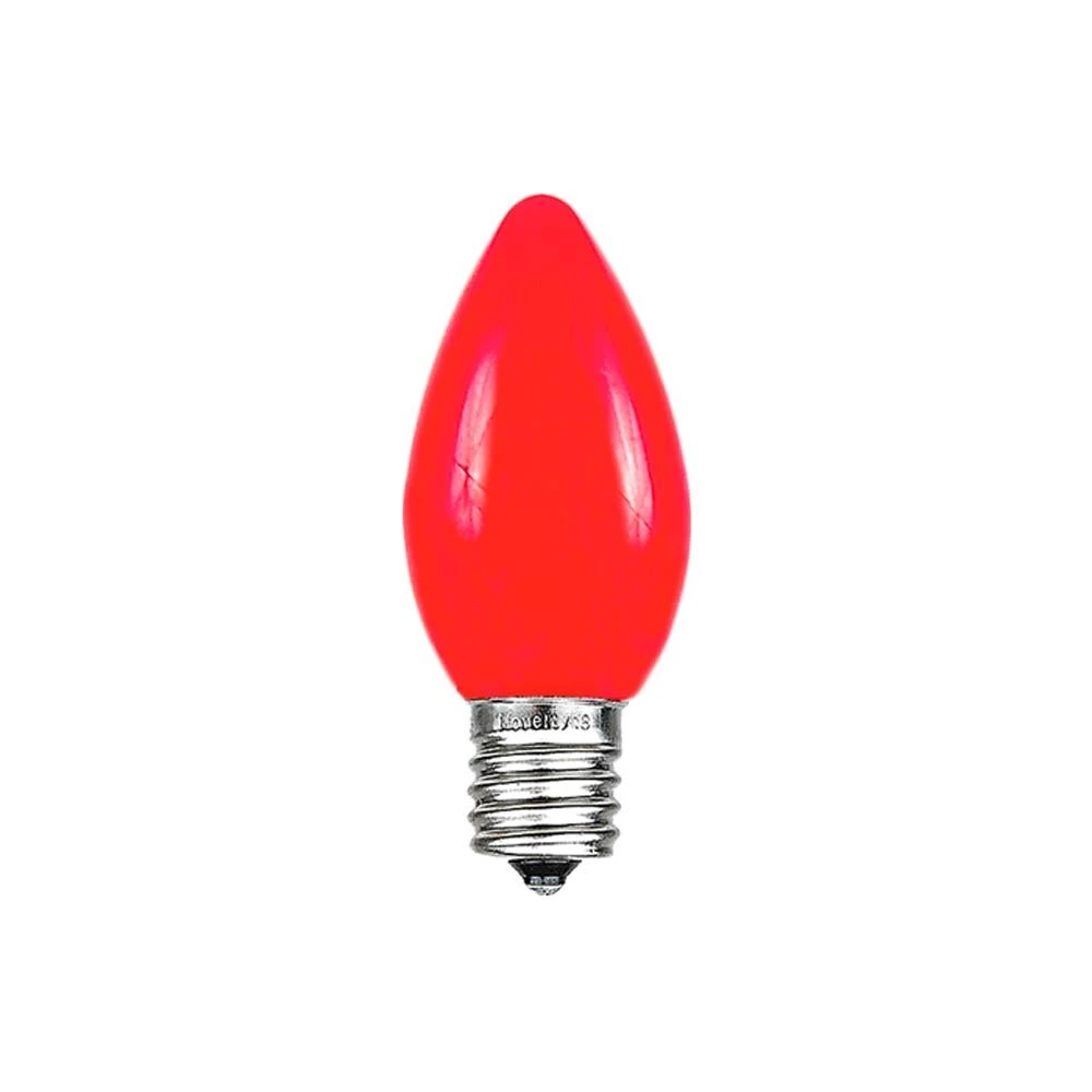 Novelty Lights Red Colored C7 LED Smooth Ceramic Bulbs (plastic), have the traditional look of our popular incandescent ceramic bulbs, but are 90% more energy efficient! These LED ceramic plastic bulbs will save you money on energy costs, but you can still enjoy the same vintage look of a painted ceramic bulb. Unlike their incandescent counter-parts, these bulbs will not get hot, giving you more options for indoor and outdoor applications, and they are plastic so they won’t break! Lasting 40,000 hours, these vintage Red colored bulbs will provide years of beautiful holiday illumination for your Christmas tree, roofline display, or outdoor Christmas light display. Use these antique style, yet energy efficient bulbs with our C7 Stringers (10’, 12.5’, 25′ & 100′), our E12 Heavy Duty Light Strings (25′, 100′ & 330′), our commercial grade bulk C7 Bulk spools as well as our vintage Twisted Wire Strings with E12 Bakelite Sockets. Each bulb utilizes 2 Ultra-Bright SMD LED Technology, does not produce heat.