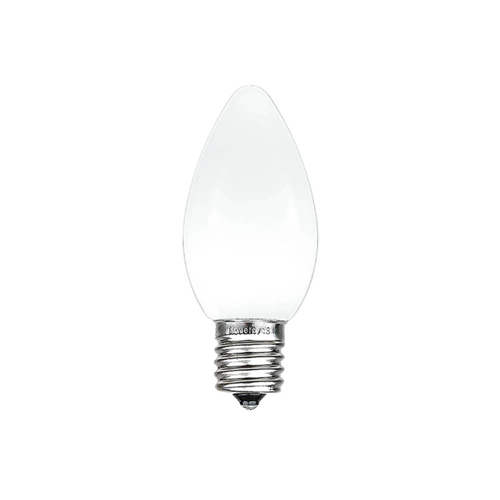 Novelty Lights White Colored C7 LED Smooth Ceramic Bulbs (plastic), have the traditional look of our popular incandescent ceramic bulbs, but are 90% more energy efficient! These LED ceramic plastic bulbs will save you money on energy costs, but you can still enjoy the same vintage look of a painted ceramic bulb. Unlike their incandescent counter-parts, these bulbs will not get hot, giving you more options for indoor and outdoor applications, and they are plastic so they won’t break! Lasting 40,000 hours, these vintage White colored bulbs will provide years of beautiful holiday illumination for your Christmas tree, roofline display, or outdoor Christmas light display. Use these antique style, yet energy efficient bulbs with our C7 Stringers (10’, 12.5’, 25′ & 100′), our E12 Heavy Duty Light Strings (25′, 100′ & 330′), our commercial grade bulk C7 Bulk spools as well as our vintage Twisted Wire Strings with E12 Bakelite Sockets. Each bulb utilizes 2 Ultra-Bright SMD LED Technology, does not produce heat.
