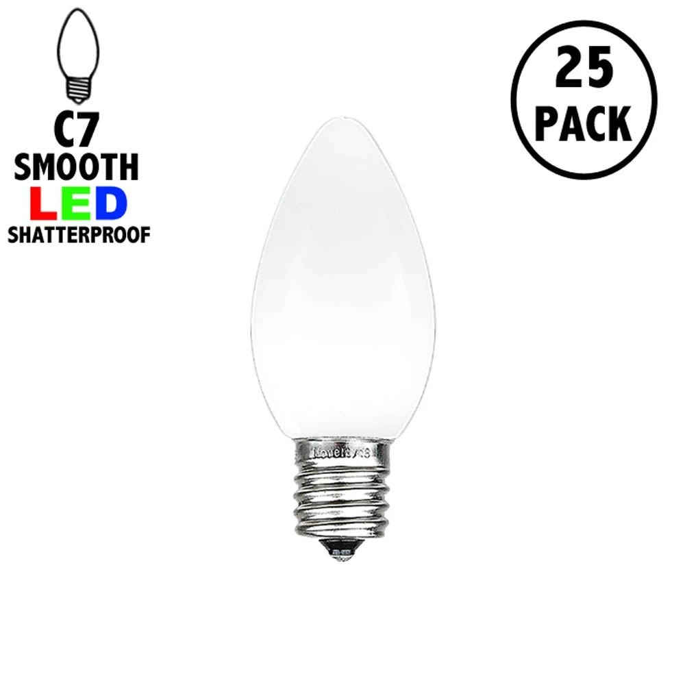 25 Pack of White Ceramic C7 LED Plastic Bulbs