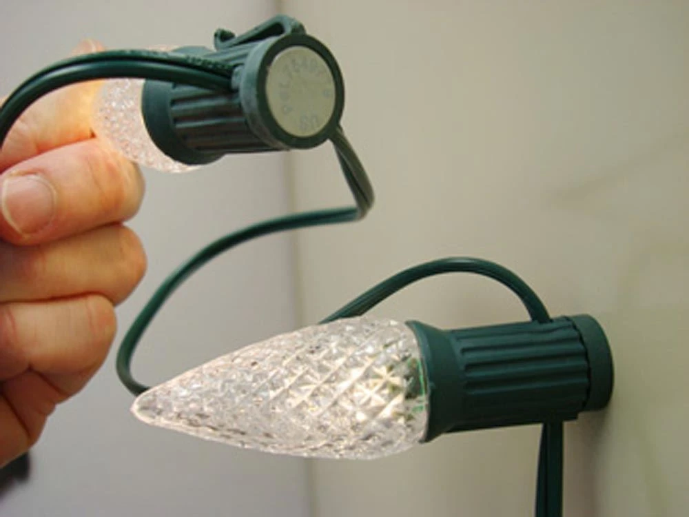 C9 100′ Magnetic string on 12″ Spacing used for homes, office buildings, barns, and restaurants. These magnetic sockets will adhere to any ferrous metals(Iron and Steel) making for quick installations since there is no need for christmas light clips. Perfect for rooflines, building flashing, and gutters. No need for screws, glues, clips just adhere the magnetic C9 socket to your metal surface saving time and labor cost. We use Neodymium grade magnets which are the strongest magnets available. Each magnet is plated with a nickel protective coating which prevents rust. Our magnetic 100-foot, green wire stringer can be used with our C9 LED Plastic Faceted and Ceramic .8 watt bulbs, and C9 LED glass .75 watts bulbs. Please look at our FAQ tab to find more information.
