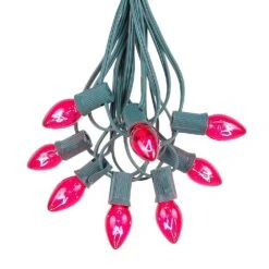 100 C7 String Light Set With Pink Ceramic Bulbs On Green Wire