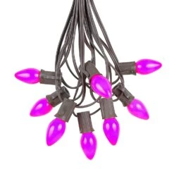 100 C7 String Light Set With Purple Ceramic Bulbs On Brown Wire