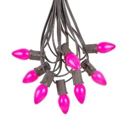 100 C7 String Light Set With Pink Ceramic Bulbs On Brown Wire