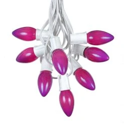 100 C9 Ceramic Christmas Light Set – Pink – White Wire