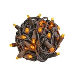 Commercial Grade Wide Angle 50 LED Amber 25′ Long On Brown Wire