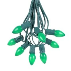 100 C7 String Light Set With Green Ceramic Bulbs On Green Wire